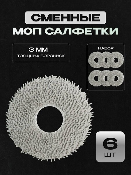 Набор из 6 микрофибровых тряпок для робота-пылесоса Dreame - это универсальные сменные насадки для влажной уборки полов. Эти тряпки изготовлены из микрофибры высокого качества, которая легко, но эффективно очищает любые поверхности. Каждая тряпка специально разработана для использования с роботами-пылесосами Xiaomi и Dreame, делая процесс уборки еще более комфортным и качественным. Данные салфетки совместимы с моделями: Dreame L10 Ultra Dreame L10s Ultra Dreame L10s Pro Dreame L20 Ultra Complete Dreame L30 Ultra Dreame L10s Plus Dreame L10 Prime Dreame L10s Pro Ultra (Heat) Dreame X10 Pro Dreame X20 Pro Dreame X20 Pro Plus Dreame X30 Pro Dreame X30 Pro Plus Dreame X30 Pro Ultra Dreame X40 Pro Dreame X40 Pro Ultra Dreame X40 Ultra Complete Dreame X50 Ultra Dreame X50 Pro Dreame Trouver E30 Ultra Dreame S10 Dreame S10 Pro Dreame S10 Pro Plus Dreame S20 Pro Dreame S30 Pro Dreame S30 Pro Ultra Xiaomi Robot Vacuum S10+ Xiaomi Robot Vacuum X10+ Xiaomi Robot Vacuum X20 Pro Xiaomi Robot Vacuum X20 Max Xiaomi Mijia Omni Robot X10 Xiaomi Mijia Omni Robot Vacuum-Mop B101GL Xiaomi Mijia Omni Robot Vacuum-Mop B101CN Xiaomi Mijia Omni Infinite M30S (D103CN) Xiaomi Robot Vacuum Mijia M30 (D102CN) Xiaomi Mijia M30 Pro (C107CN) Xiaomi Mijia Omni Infinite Robot Vacuum M40 (D110CN) iaomi Mijia Infinite Robot Vacuum-Mop 1S (B116CN) Xiaomi Mijia Almighty Sweeping Robot 2 (C102CN) Xiaomi Mijia Sweeping Robot Vacuum Mop 3S (B108CN) Xiaomi Mijia Self Cleaning Robot Vacuum Mop 2 Pro (B113CN) Roborock QRevo Roborock QRevo MaxV Roborock QRevo Pro Roborock Qrevo Curv Roborock QRevo S Roborock P10 Roborock Saros 10R Удивительное сочетание функциональности и практичности делает эти микрофибровые тряпки необходимым аксессуаром для вашего дома. Используйте их при чистке полов, чтобы обеспечить безупречную чистоту и свежесть в вашем доме. Этот набор тряпок станет идеальным помощником в повседневных задачах по уходу за домом. Мягкая МОП салфетка для швабры изготовлена из специального материала, который бережно очищает полы от загрязнений, не повреждая их структуру. Благодаря высокой впитываемости и прочности микрофибры, эти насадки легко справляются с любыми загрязнениями на полу. После завершения уборки можно легко снять тряпку с робота-пылесоса и просто помыть её для следующего использования. Экономьте время на уборке благодаря этому бытовому аксессуару! Набор микрофибровых тряпок для робота-пылесоса Dreame - ваш незаменимый помощник в создании чистоты и порядка в доме!