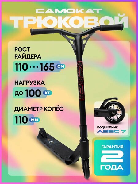 Спортивные трюковые самокаты завоевали популярность среди активных подростков и молодёжи. Модель идеально подойдет для начинающих райдеров ростом от 110 до 165 см. Он имеет жёсткую раму, надежную рулевую вилку и крепкую алюминиевую деку с нескользящим покрытием, широкий нерегулируемый по высоте Y-образный руль с вращением на 360 градусов и крепкие манёвренные колёса из полиуретана диаметром 100 мм. Высота руля от нижней части зажима 76 см, от поверхности земли 83 см, ширина руля 49 см. Размеры деки 48*10 см. Для изготовления самоката двухколесного используются достаточно лёгкие материалы, но выдерживающие большую нагрузку до 100 кг. Вы легко сможете выполнять прыжковые трюки и элементы скольжения. Трюковой самокат стрит приходит в разобранном виде в коробке, все что необходимо – присоединить руль к деке, с помощью зажима (в комплект входит шестигранный ключ). Двухколесный скоростной самокат отлично подойдет как для мальчика, так и для подростка. Стильный и яркий дизайн скутера позволит выделиться на улице и в закрытом или открытом скейт парке.