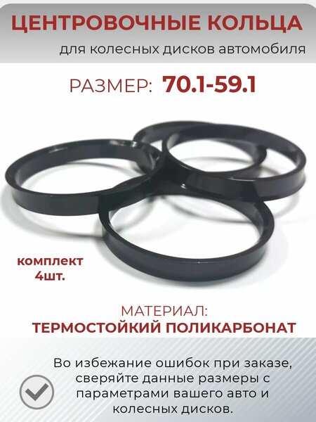 **Для того, чтобы сделать центральное отверстие диска, соответствующим параметрам ступицы вашего автомобиля и обеспечить его надежную посадку, при монтаже необходимо применять центровочные кольца.****Если на выступе ступицы жестко не фиксировать посадочное отверстие колеса, то центровка колеса выполняется болтами или шпильками. Такое крепление колеса не может обеспечить достаточную центровку, вследствие чего возникает смещение диска, и в результате появляются следующие проблемы:****-биение рулевого колеса *-возникновение механических вибраций кузова автомобиля- **-неравномерное изнашивание шины;**- **преждевременный выход из строя резинотехнических деталей в подвеске**- внешний диаметр кольца: **70,1**- внутренний диаметр кольца: **59,1**- **материал: термостойкий пластик****При заказе, сверяйте данные с параметрами на вашем автомобиле и на колесном диске.****цвет колец может отличаться.