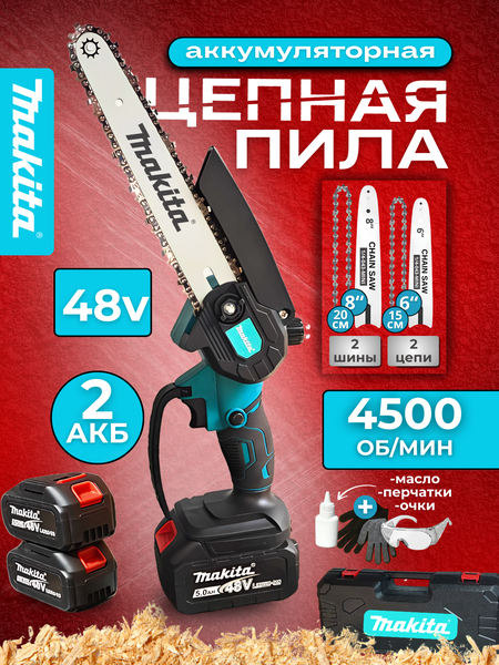 Аккумуляторная цепная пила обладает рядом преимуществ. Высокий крутящий момент обеспечивает быстрый и беззаклиненный рез, а скорость цепи 8 м/с гарантирует аккуратную и быструю работу. Фиксатор клавиши включения предотвращает несанкционированный пуск, обеспечивая безопасность. Кроме того, пила имеет защиту рук, небольшие габариты и работает бесшумно, не загрязняя окружающую среду. Заряд аккумулятора составляет 1,5 часа. Также, благодаря возможности питания от одного универсального аккумулятора 48В, пила отлично подходит для работы вдали от электросети. Благодаря уникальным характеристикам, эта пила подходит для решения различных задач на садовом участке, а ее автоматизированная безопасность и эффективная пильная система делают работу с ней удобной и безопасной. В этой улучшенной модели добавлен выключатель открытого предохранителя, вам нужно одновременно удерживать предохранительный замок и спусковой крючок, чтобы запустить пилу, чтобы предотвратить случайный запуск . Кроме того, добавлен режим микросвета, который может сыграть роль при плохом освещении в темном лесу. Электрическая мини-бензопила специально разработана для обработки древесины легких и небольших деревьев, сучков. Легкий корпус, вес 1,5 кг и общая длина 33 см. Мощность пиле требуется около 10 секунд, чтобы распилить бревно диаметром 15-20 см дюйма. Эту пилу можно брать с собой, например если вы поехали на дачу, она не занимает много места и весит всего 1,5 кг, в отличии от большой бензопилы, которая занимает весь багажник. Портативная цепная пила поставляется с литиевой аккумуляторной батареей от 48 V и 3000мАч. После полной зарядки электрическую аккумуляторную электропилу можно использовать в течение 1-2 часов, она портативна и имеет низкое энергопотребление. Идеально подходит для распила древесины, обрезки деревьев и садоводства.