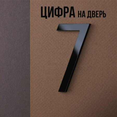 Цифра на дверь квартиры 7 самоклеящаяся, высота 6 см, черная