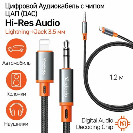 Цифровой штекерный Аудио кабель переходник с чипом DAC, Lightning (п) на AUX Jack 3.5 мм (п) 1,2м, Hi-Res HD Audio, Mcdodo CA-0780