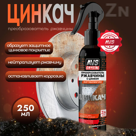 Преобразователь ржавчины AVS "Цинкач" - это надежное антикоррозийное средство, которое способно эффективно защитить ваш автомобиль от ржавчины. Преобразователь ржавчины 250 мл, спрей. Благодаря своему составу, включающему активные компоненты, он не только удаляет ржавчину, но и образует защитную пленку, препятствующую коррозии. Применение Антиржавчина для кузова, не требует специальных навыков: достаточно распылить его на поврежденные участки, и оно начнет действовать мгновенно. Лучший преобразователь ржавчины для автомобиля. С его помощью вы сможете без труда восстановить внешний вид автомобиля и продлить срок службы его компонентов. ЦИНКАЧ преобразователь ржавчины для автомобиля, подходит для различных металлических поверхностей, включая кузов и шасси. Антиржавчина преобразователь для Авто, он может быть использован как в процессе профилактической обработки, так и для восстановления уже поврежденных участков. Преобразователь ржавчины "Цинкач", очень удобен в использовании благодаря своей форме спрея. Цинкач антиржавчина для машины, позволяет точно и равномерно распределять средство по поверхности, обеспечивая максимальную эффективность обработки. Антиржавчина с цинком для машины. Инвестируйте в защиту своего автомобиля, используя проверенные антикоррозийные средства, и наслаждайтесь беззаботной ездой на протяжении многих лет. Средство "Антиржавчина" для авто, работает при температуре от +10°С до +30°С. В его состав входят обессоленная вода, неорганическая кислота, соли цинка и функциональные добавки.