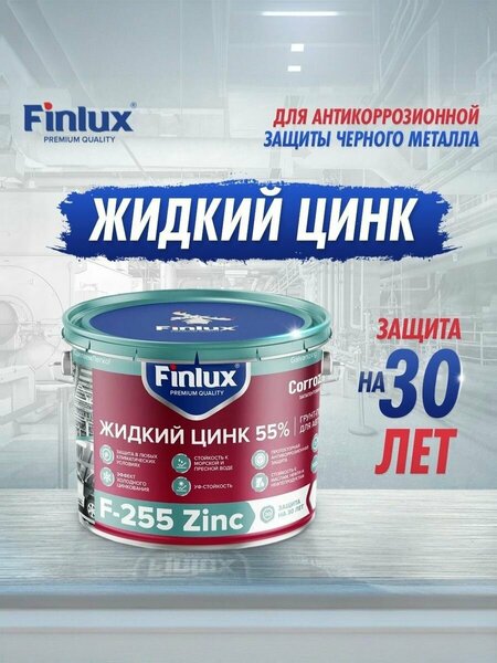 Цинконаполненный грунт-протектор обеспечивает непревзойденную защиту металла от коррозии. Благодаря особым компонентам, цинконаполненное покрытие из экспортной серии Finlux, выдерживает по-настоящему жесткие условия эксплуатации в промышленной атмосфере, интенсивное воздействие пресной и соленой воды, агрессивных химических реагентов.