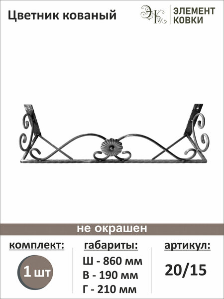 Этот элегантный кованый цветник станет настоящим украшением вашего дома или сада. Изготовленный из металла, он обладает прочностью и долговечностью, что гарантирует его долгий срок службы даже в условиях внешней среды. Подходит под стандартные окна, обеспечивая удобное размещение растений. Стильный узор ковки придаст вашему окну изысканный вид и подчеркнет индивидуальность интерьера. Легко устанавливается и не требует специального ухода. Может окрашиваться в любой цвет. Подходит для стандартных балконных ящиков шириной 80 см. Материал: квадрат 12 мм, круг 10 мм, полоса 4х40 мм Технические характеристики могут незначительно отличаться от заявленных, но это не влияет на их свойства и дальнейшее использование. Цветник не окрашен, поэтому рекомендуется хранить их в сухом помещении до монтажа. Некоторые изделия могут иметь незначительные следы коррозии, но это не является браком и не влияет на их качество.