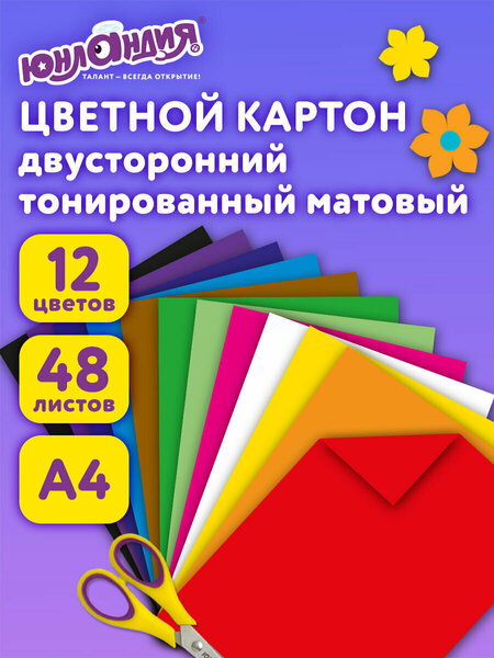 Цветной картон А4 от юнландия — идеальный выбор для творчества и хобби. Этот картон цветной, с плотностью 180 г/м2, прекрасно подходит для использования детьми от трех лет. Благодаря технологии тонирования в массе, каждая из 48 листов, доступных в 12 ярких цветах, сохраняет насыщенный оттенок как на поверхности, так и на срезе, что делает его идеальным для создания оригинальных поделок и проектов на уроках труда и технологии. Картон легко режется, сгибается и клеится, что делает его незаменимым элементом в канцелярии для школы. Листы цветного картона скреплены специальной клейкой основой, что обеспечивает легкость и аккуратность при отрыве. Каждый ребенок сможет без труда достать необходимый лист и начать творить. Выбирая цветной картон юнландия, вы получаете качественный и удобный материал для любых творческих задач. • Формат: А4. • Количество листов: 48. • Количество цветов: 12. • Тип картона: тонированный. • Двусторонний: да. • Плотность картона: 180 г/м2. • Тип товара: картон цветной тонированный. • Дизайн: Юнландик на даче. • Длина: 297 мм. • Ширина: 210 мм. • Индивидуальная упаковка: да. • Упаковка: термопленка. • Артикул производителя: 129877.