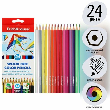 Цветные карандаши Erich Krause 24 цвета, пластик, шестигранные, грифель 3 мм, европодвес