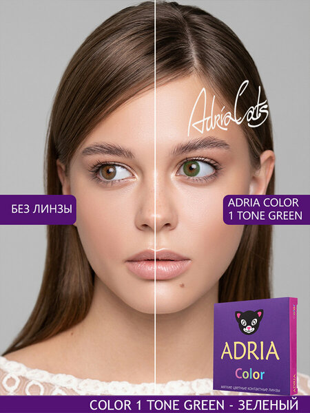 Adria Color 1 Tone (Адрия Колор 1 Тон) - оттеночные гидрогелевые контактные линзы, на 3 месяца.\nAdria Color 1 Tone сделают глаза яркими, и в тоже время они будут выглядеть естественно. Придают оттенок темным и светлым глазам или усиливают свой цвет глаз. Пять притягательных цветов на ваш выбор: серый (Grey), карий (brown), голубой (Blue), зеленый (Green), лаванда (Lavender). Попробуйте каждый - и выберите любимый оттенок.\n\nЦветные линзы Adria Color 1 Tone выпускаются с диоптриями и без. Зрение в них сверхчеткое и контрастное при любой интенсивности освещения благодаря HD-технологии.\n\nПопробуйте изменить цвет глаз, и изменения в вашей жизни тоже, наверняка, не заставят себя ждать.