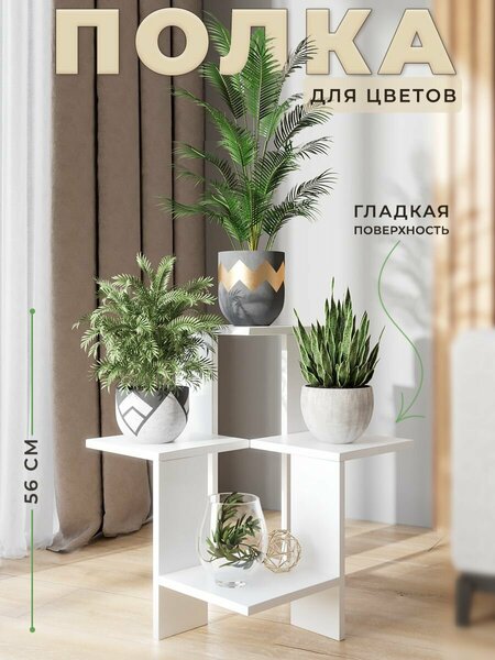 Цветочница напольная из ЛДСП, многофункциональная полка белая – лучшее решение для вашего интерьера. Только представьте, эта полка для цветов напольная, сможет придать вашему домашнему оазису более гармоничное и аккуратное расположение. Цветы делают дом уютнее, будь то кухня, спальня или детская комната. Несмотря на свои не крупные размеры наша полочка выдерживает 115 КГ! Именно поэтому, все ваши горшочки будут в безопасности! Это не просто опора для цветов или гостиная мебель, это стильный элемент декора, который будет радовать вас ежедневно. Двухуровневая система расположения, четыре (4) вместительные полки, позволят реализовать самые смелые решения. Использовать можно не только для растений, но и как стеллаж для книг, косметики, фотографий и многого другого Наша деревянная полка изготовлена только из натуральных материалов, используется ЛДСП класса Е1. Мы старались не писать много текста, а лишь рассказать, что сделать свой дом уютнее, намного проще чем кажется! Спасибо за клик, и приятных покупок!