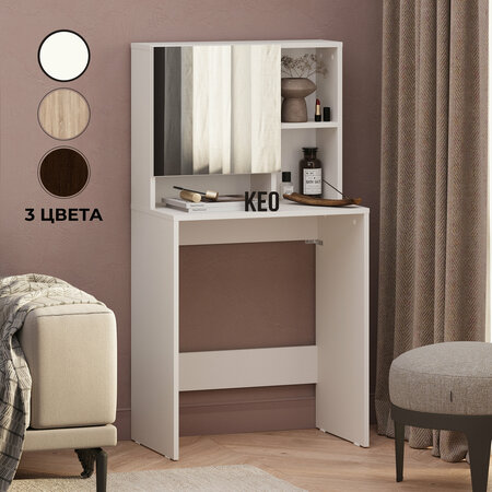 Одной из особенностей этого туалетного столика является зеркало, которое скрывает за собой две удобные полочки для хранения косметики, украшений или других мелочей. Это позволяет сохранить порядок на вашем столике и обеспечивает легкий доступ к необходимым вещам.