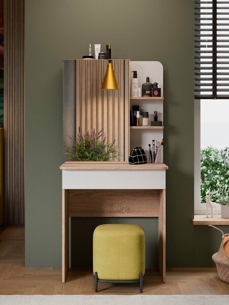 Туалетный стол Майя - идеальное место для проведения ежедневных процедур, нанесения макияжа, разнообразие расцветок изделия позволяют приобрести подходящую модель для помещения, оформленного в любом стиле. Классический и минималистичный дизайн, сбалансированная конструкция, доступная цена. Дамский столик предназначен для размещения на нем косметики, парфюмерии, украшения и привести себя в порядок перед зеркалом. Модель оборудована удобной столешницей, выдвижным ящиком для защиты ваших косметических средств от пыли и прямых солнечных лучей, зеркалом и дополнительных полочек сбоку. Также есть скрытый ящик с небольшими полочками за зеркалом. Выдвижной ящик оснащен качественной фурнитурой - шариковые направляющие полного выдвижения. Качественные материалы делают столик для макияжа износостойким, способным прослужить многие годы - используется экологически безопасный ЛДСП - 16 мм. Благодаря трюмо ежедневные процедуры и нанесение макияжа станет комфортнее, удобнее, практичнее и быстрее. Поставляется в разобранном виде. Все технические отверстия сделаны на производстве, фурнитура для сборки и инструкция идет в комплекте, также инструкцию Вы можете найти в карточке товара. Прежде чем приступить к сборке, необходимо убедиться в качестве, количестве и соответствии всех деталей. Если таковые выявлены, незамедлительно свяжитесь с площадкой и продавцом, для разрешения вопроса, не приступая к сбору изделия.