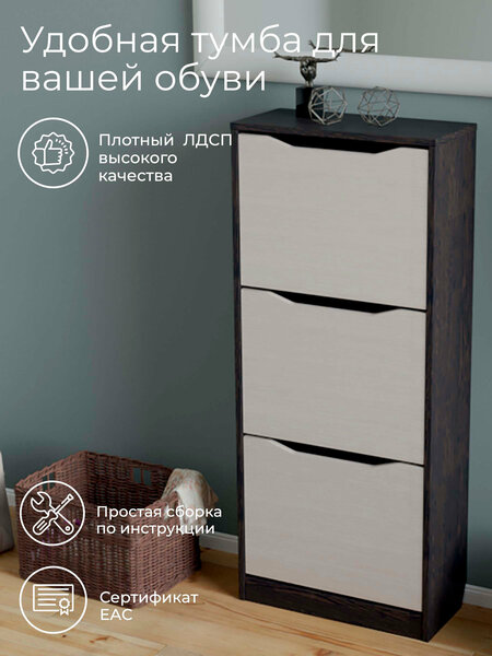 Достоинства:хорошее качество и сочетание цветов. понятная схема сборки, удобная в использовании Недостатки:для размеров обуви, больше 45-го немного маловата. На схеме сборки плохо показана установка ограничителей открывания Комментарий:В целом рекомендую. Для сборщиков лайфхак: установку ящиков лучше производить с обратной стороны, тогда влезают без проблем, Ну и обязательно крепить к стене, иначе может завалиться вперёд при открывании