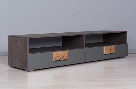 Тумба под телевизор напольная с ящиками и полками Монро СТ-17, 38х165х45 см, ЛДСП, дуб темный