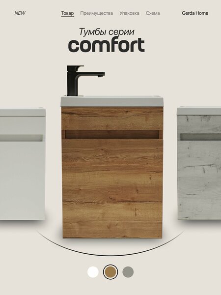 Тумба с раковиной Gerda Comfort 40 см — подвесная бежевого (дуб золотой) цвета тумба для ванной. Компактная и функциональная тумба с раковиной Gerda Comfort шириной 40 см — идеальное решение для современных ванных комнат, где важно рационально использовать пространство. Подвесная конструкция облегчает уборку и визуально расширяет помещение. Преимущества: