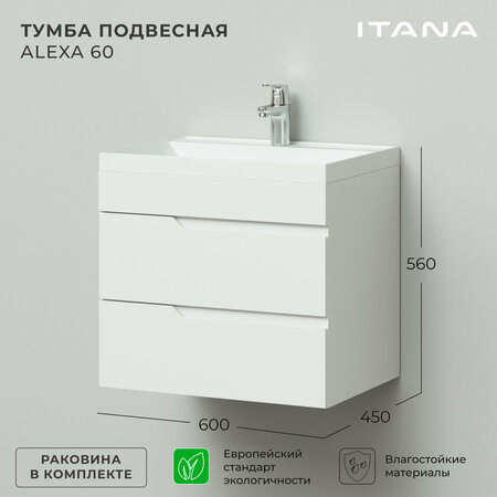 Подвесная тумба с раковиной из коллекции Alexa - это сочетание современной стилистики и богатого функционала. Подвесной способ установки дает возможность не только визуально увеличить пространство, но и обеспечивает быстрый и удобный доступ для уборки. Тумба для ванной комнаты покрыта ПВХ-пленкой, что обеспечивает изделию привлекательный внешний вид, а также износостойкость и долговечность. Качественная фурнитура с доводчиками обеспечивает легкое открывание и плавное закрывание ящиков. Вырез под сифон универсальный, для любого типа. Благодаря своей конструкции тумба обеспечивает удобный доступ к раковине и позволяет скрыть коммуникации. Тумба с раковиной в ванную оснащена удобными ящиками для хранения, что позволяет разместить всё необходимое под рукой. Ручки интегрированы в фасад , что исключает возможность случайного удара о фурнитуру. Для точного выбора тумбочки с раковиной в ванную комнату рекомендуем обратиться к схеме замеров, которая находится в карточке товара, размеры изделия могут отличаться +/-1 см в связи со спецификой производства. Дополнить комплект вы можете настольной раковиной Ceramica Nova Element и изделиями из коллекции Alexa. В комплекте: Тумба, крепеж, раковина, фурнитура.