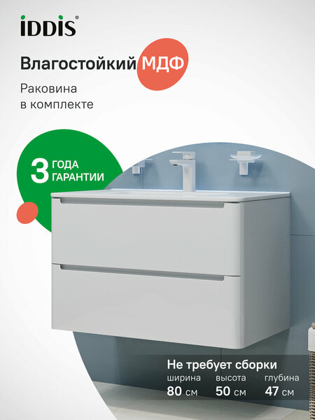 Тумба с умывальником подвесная IDDIS Edifice 80 см белая EDI80W0i95K