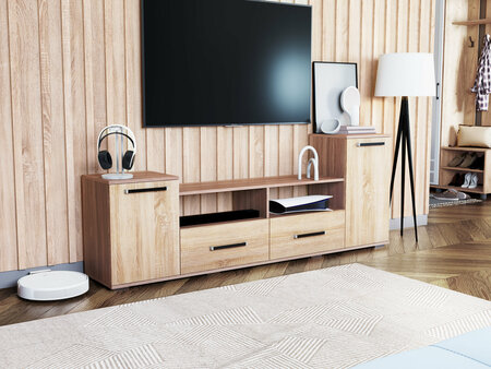 Тумба ТВ Парус-2 - это стильное и функциональное решение для вашей гостиной, спальни, офиса или детской комнаты. Она сочетает в себе современный дизайн и высокое качество материалов. Тумба имеет размеры (ВхШхГ) 750х2000х375 мм, что позволяет разместить телевизор и другие необходимые предметы. Корпус и фасад выполнены из качественного ЛДСП. Это гарантирует прочность и долговечность изделия. Тумба оснащена двумя выдвижными ящиками на роликовых направляющих, что обеспечивает удобство использования и легкий доступ к содержимому. Максимальная распределенная нагрузка на верхнюю крышку тумбы составляет не более 15 кг, что позволяет использовать ее для хранения различных предметов. Тумба ТВ Парус-2 устанавливается как отдельно стоящая, что позволяет выбрать оптимальное место для ее размещения. Товар поставляется в разобранном виде, что облегчает его транспортировку и сборку. Выбирая тумбу ТВ Парус-2, вы получаете стильное, функциональное и качественное изделие, которое станет незаменимым элементом вашего интерьера.