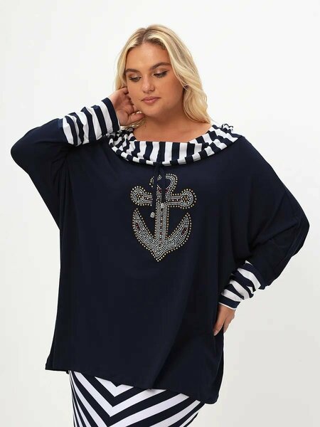 Стильная туника с капюшоном из вискозного трикотажа больших размеров — идеальный выбор для создания модного образа. Наша туника отличается свободным кроем, что делает его подходящим для разных ситуаций. Капюшон - воротник затягивается кулиской. Спереди украшена красивой аппликацией из страз. Это позволяет носить тунику как дома, так и в офисе, сохранять оптимальную температуру в любое время года. Женская туника большого размера прекрасно сочетается с юбками, брюками или штанами, создавая спортивный или casual стиль, удобный для повседневного использования. Оверсайз крой добавляет образу нотки современности и свободы движения. Полосатый принт и белый цвет придают модели свежесть и универсальность. Это отличный вариант одежды на лето: тонкий материал обеспечивает хорошую вентиляцию в жаркие дни. Длина 72-75см Состав ткани 93%вискоза, 7%лайкра.