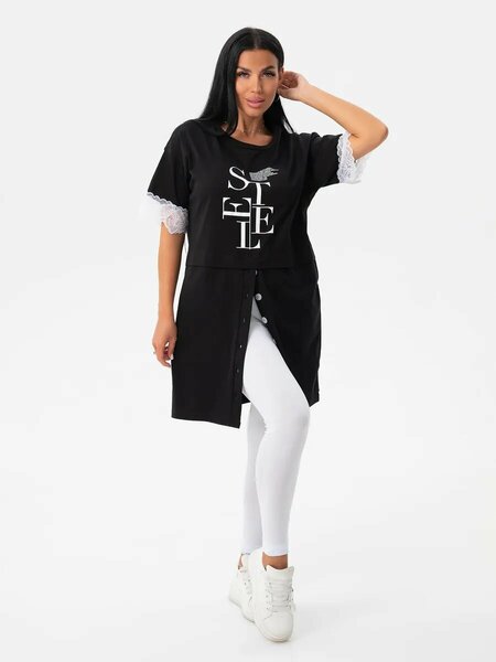 Оригинальная -новинка туника- платье с принтом от бренда "Трикотажные сезоны" будет отлично смотреться на любом типе фигуры. Обладает стильными деталями, которые способны сделать любимой вещью в гардеробе. Расстегивающаяся юбка от талии- пикантный акцент, который привлекает внимание. Каждой девушке приятно видеть восторженные взгляды в ее сторону, получать комплименты. Легкий, свободный фасон, наличие милого кружева на рукавах, подчеркнет вашу женственность и красоту. После первой примерки вам захочется как можно чаще создавать с ним луки. Платье однотонное прямого силуэта можно носить самостоятельно. Формат удлиненной футболки удобен для повседневного ношения. Если добавить к образу леггинсы/капри, расстегнуть пуговицы – вы получите абсолютно новый трендовый образ в спортивном стиле. Туника будет уместна в любых ситуациях, на прогулках, отдыхе, в путешествиях или в отпуске. Удлиненная туника имеет широкий размерный ряд. Длина оптимальна как для высоких, так и для невысоких девушек. Округлый вырез горловины не растягивается. Трикотажное изделие из хлопка очень мягкое и приятное к телу. Чтобы презентабельный внешний вид радовал вас как можно дольше, рекомендуем стирать его вручную или на деликатном режиме. В ассортименте представлены трендовые оттенки, среди которых вы точно найдете свой. Отлично подойдет в качестве подарка женщине или сюрприза без повода. В платье повседневном вы всегда будете в центре внимания, а ваш образ - стильным и современным. Если вы хотите ощущать комфорт и свободу, то это платье-туника от бренда "Трикотажные сезоны" точно для Вас!