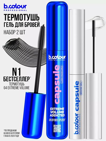 B.COLOUR PROFESSIONAL Тушь для ресниц, термотушь и Гель для бровей, набор 2 шт, CAPSULE