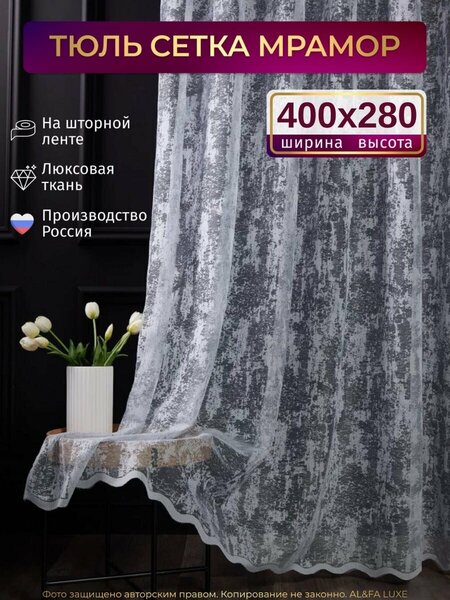 Тюль Мрамор серо-голубой сетка 280х400 Готовая штора отшита на ленте, шириной 4 см, которую можно стягивать и подстраивать под размер окна. Штора крепится на крючки, но можно крепить без использования крючков, продев их на штангу карниза. Способы крепления: На крючки к шторной ленте ( шириной 4 см. ) На штангу ( продев ее в тюль без использования крючков ) На кольцах Наши шторы Тюль сделаны из ткани Мрамор сетка– это универсальный вариант оформления интерьера, которые подходят практически везде: в гостиную, кухню, столовую, спальню, детскую, кабинет, офис, спортивный зал, зал для медитации, йоги, на веранду, балкон, оформление дверных проемов и т. д. Занавеска ( тюль ) из вуали может фильтровать солнечный свет и балансировать уровень освещенности в помещении и на улице. Рекомендации по уходу: Деликатная стирка при 30 градусах Гладить при низкой температуре (через марлю) Сушить вертикально под собственным весом В комплекте - 1 штора. Возможны отклонения полученных размеров от указанных на этикетке и сайте (+/- 2-5 см). Дорогие покупатели, также в нашем магазине Вы найдете много других, качественных вещей, с Любовью ваш магазин AL&FA.