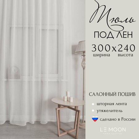 Тюль под лён с утяжелителем 300х240 белый в спальню, в комнату, в детскую, на кухню