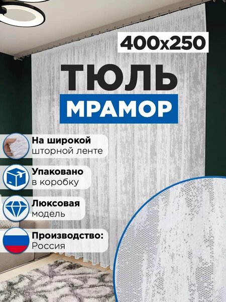 {"widgets":{"@card/UniversalPromoBadge":{"/content/page/fancyPage/universalPromoBadge":{"wrapperProps":{"margins":{"bottom":"3"}},"initialTime":1759666961682,"offerComposeId":"1054221967"}}},"meta":{"/content/page/fancyPage/universalPromoBadge":{"name":"@card/UniversalPromoBadge"}},"collections":{"productServiceSnippets":{"1054221967":{"productSnippet":{"type":"MODEL_CARD_LAYOUT","productPayload":{"title":{"value":"Тюль в гостиную и спальню под мрамор 400х250 см"},"badges":{},"wishlistButton":{"mskuId":4605503371,"businessId":142784704,"modelId":1054221967,"oskuId":4605503371},"rating":{"reviewsCount":549,"ratingCountStats":{"cnt3":54,"cnt4":83,"cnt2":22,"cnt1":26,"cnt5":1985},"ratingValue":4.8,"ratingCount":2170},"gallery":{"galleryType":"VISUAL","mediaItems":[{"type":"IMAGE","picture":{"height":1200,"width":900,"title":"Тюль в гостиную и спальню под мрамор 400х250 см","baseUrl":"https://avatars.mds.yandex.net/get-mpic/14836541/2a00000198e23af2de3f9e9cf0e1393b9ae4/"}},{"type":"IMAGE","picture":{"height":1200,"width":900,"title":"Тюль в гостиную и спальню под мрамор 400х250 см","baseUrl":"https://avatars.mds.yandex.net/get-mpic/7658590/2a000001959049b9a2b9fcb05571d84d02f1/"}},{"type":"IMAGE","picture":{"height":1200,"width":900,"title":"Тюль в гостиную и спальню под мрамор 400х250 см","baseUrl":"https://avatars.mds.yandex.net/get-mpic/13714821/2a000001959047d9cdc7159724472d46c3fe/"}},{"type":"IMAGE","picture":{"height":1200,"width":900,"title":"Тюль в гостиную и спальню под мрамор 400х250 см","baseUrl":"https://avatars.mds.yandex.net/get-mpic/4314340/2a000001959047d9ce0284743e30d83c6e28/"}},{"type":"IMAGE","picture":{"height":1200,"width":900,"title":"Тюль в гостиную и спальню под мрамор 400х250 см","baseUrl":"https://avatars.mds.yandex.net/get-mpic/13969676/2a000001959047d9ce0dc6ce6e495a683013/"}},{"type":"IMAGE","picture":{"height":1200,"width":900,"title":"Тюль в гостиную и спальню под мрамор 400х250 см","baseUrl":"https://avatars.mds.yandex.net/get-mpic/1863454/2a000001959048caabdce26e5c741ed9f1b4/"}},{"type":"IMAGE","picture":{"height":1200,"width":900,"title":"Тюль в гостиную и спальню под мрамор 400х250 см","baseUrl":"https://avatars.mds.yandex.net/get-mpic/5233990/2a000001959049b9a270e6363cbd59b48073/"}},{"type":"IMAGE","picture":{"height":1200,"width":900,"title":"Тюль в гостиную и спальню под мрамор 400х250 см","baseUrl":"https://avatars.mds.yandex.net/get-mpic/12152435/2a000001959049b9a314c1d91a96eda57af1/"}},{"type":"IMAGE","picture":{"height":1200,"width":900,"title":"Тюль в гостиную и спальню под мрамор 400х250 см","baseUrl":"https://avatars.mds.yandex.net/get-mpic/5255164/2a000001959047d9cdbdd7768f84855738f8/"}},{"type":"IMAGE","picture":{"height":1200,"width":900,"title":"Тюль в гостиную и спальню под мрамор 400х250 см","baseUrl":"https://avatars.mds.yandex.net/get-mpic/12411215/2a000001959049b9a2b853e090737ab10ed4/"}},{"type":"IMAGE","picture":{"height":1200,"width":900,"title":"Тюль в гостиную и спальню под мрамор 400х250 см","baseUrl":"https://avatars.mds.yandex.net/get-mpic/16273139/2a00000198e23af2dea40b6ffbca7b128eeb/"}}]},"snippetStyle":"NORMAL"},"baobabPayload":{"marketSku":"4605503371","type":"offer","isUltima":false,"modelId":1054221967,"snippet_type":"product","wareId":"out-of-stock","oskuId":4605503371,"hid":60640952,"isExpress":false,"vendorId":55087628}}}}}}