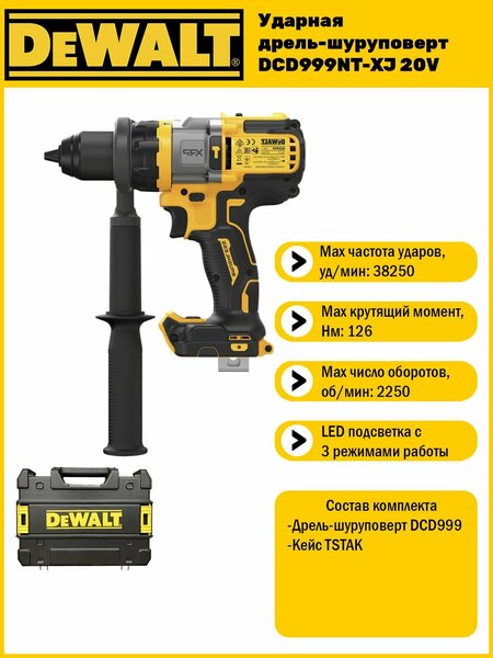 Ударная дрель-шуруповерт Dewalt DCD999NT-XJ без АКБ и ЗУ в кейсе TSTAK