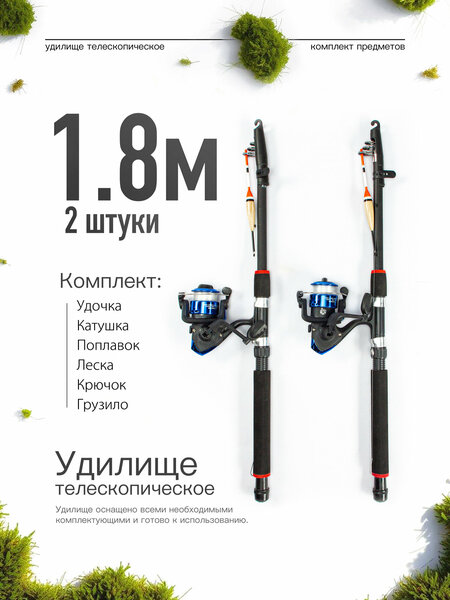 Удочка (удилище) - удобная и компактная для ловли на всех видах водоемов. Полностью готова к рыбалке! Удилище оснащено всеми необходимыми комплектующими. В состав удочки входят: • удочка - 1 шт. • безынерционная катушка SY200X - 1 шт. • поплавок - 1 шт • крючок - 1 шт. • грузило - 1 шт. Длина удочки в сложенном виде - 45 см. (легко поместится в небольшой рюкзак) Оптимальный размер 1,8 метра для начинающего и опытного рыболова. Удилище выполнено из биопластика повышенной прочности. Легкое и удобно лежащее в руке. Кольца с керамическими вставками сохраняют леску от перетирания и обеспечивают плавность изгиба. Удочка оснащена безынерционной катушкой. Комплект 2 шт. Внимание! Цвет катушки, форма и цвет поплавка может отличаться от представленного на фото! Отличная удочка для рыбалки, также будет незаменимым подарком для любого мужчины! Рыбачьте с удовольствием!