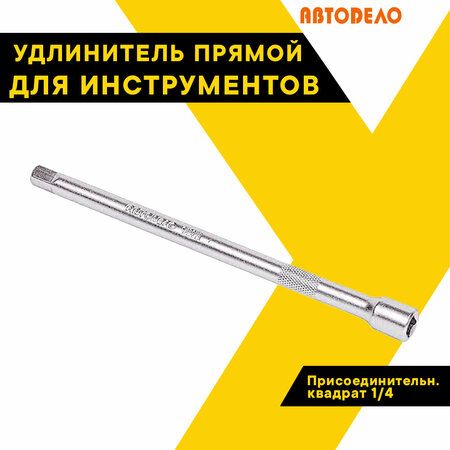 Удлинитель для инструментов АвтоDело 1/4", 150мм, 39763 - незаменимый помощник в ремонте автомобиля. Удлинитель оснащен специальным подпружиненным шариком, который обеспечивает более плотное удерживание насадки. Это позволяет производить различные манипуляции, такие как откручивание плотно посаженных элементов крепежа в труднодоступных местах. Материал изготовления удлинителя - прочная и долговечная хром-ванадиевая сталь CrV. Это гарантирует надежность и долговечность инструмента. Для предотвращения коррозии удлинителя, на его поверхность нанесено матирующее хромированное покрытие. Удлинитель имеет внутренний и наружный наконечники, а также длину 150 мм. Посадочный квадрат составляет 1/4". В комплекте поставляется одна штука удлинителя. Выбирая удлинитель для инструментов АвтоDело 1/4", 150мм, 39763, вы получаете надежный и долговечный инструмент, который станет незаменимым помощником в ремонте автомобиля.