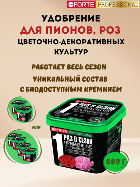 Удобрение Bona Forte гранулированное пролонгированное Для пионов и роз с биодоступ. кремнием. Гранулированное и пролонгированное минеральное удобрение с биодоступным кремнием ускоряет рост и развитие растений в 1,5 - 2 раза. Удобрение для цветов произведено произведено по уникальной передовой технологии SIIOG, обеспечивающей важные качественные преимущества перед традиционным смешением. Содержит основные элементы питания в легкоусвояемой форме и сбалансированном соотношении. Подходит для клубники, ежевики и смородины. Клюквы, ягодных и декоративных кустарников. Способствует хорошему росту растений и получению высокого урожая. Преимущества. Равномерное внесение - благодаря содержанию всех компонентов в одной грануле растение гарантированно обеспечивается каждым элементом питания. Пролонгированное действие - благодаря входящему в состав удобрения цеолиту удобрение не вымывается со временем ( 1-2 внесения хватает на весь сезон). Хорошая растворимость - начинает действовать моментально. состав: фосфор-13%, калий-13%, биодоступный кремний-20%, магний - 0,3 %, кальций - 0,25 %, бор, железо, марганец, цинк, медь, молибден, комплекс витаминов B1, В6, В12, PP, С, янтарная кислота.