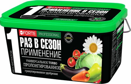 BONA FORTE Professional TURBO - минеральное удобрение универсального назначения. Гранулы содержат основные питательные элементы в легкоусвояемой для растений форме: витамины, фосфор, магний, азот, калий, кальций и др. Преимущества Удобрение в гранулах удобно в использовании, экономно расходуется. Благодаря пролонгированному действию вносится один раз за сезон. Уникальная формула не содержит нитратов и хлора, действует моментально. В составе каждой гранулы присутствует весь набор микроэлементов, что обеспечивает равномерность внесения. Удобрение стимулирует рост, укрепляет иммунитет растений, повышает урожайность. Область применения Минеральное удобрение BONA FORTE Professional подходит для овощных, плодовых, ягодных, декоративных культур и цветов. Гранулы рассыпают по поверхности почвы, после чего производят рыхление, вспашку или перекопку. BONA FORTE - бренд компании русинхим, которая разрабатывает и производит товары для ухода за растениями: удобрения, грунты, средства защиты от вредителей, болезней и др. Компания располагает собственным научно-исследовательским центром, постоянно совершенствует продукцию.