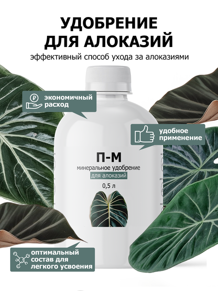 Пуршат-М (П-М) – это специализированное минеральное удобрение, созданное для ухода за алоказиями. Обеспечивает растения всеми необходимыми элементами для развития крупных декоративных листьев и устойчивости к стрессам. Преимущества: ✔ Стимулирует рост мощных листьев с яркой окраской ✔ Укрепляет иммунитет против болезней и вредителей ✔ Повышает устойчивость к перепадам влажности и температуры ✔ Экономичный расход – 0,5 л до 50 л рабочего раствора ✔ Быстрое усвоение – видимый результат через 10-14 дней Сбалансированный состав: Азот (N) – для роста листовой массы Фосфор (P₂O₅) – для развития корневой системы Калий (K₂O) – для устойчивости к стрессам Магний (MgO) + сера (S) – для фотосинтеза Комплекс микроэлементов (Fe, Cu, Zn, Mn, B) Способ применения: Развести 7-10 мл концентрата в 1 л воды Поливать под корень до полного увлажнения почвы Периодичность: Апрель-октябрь: 1 раз в 2 недели Ноябрь-март: 1 раз в месяц Рекомендации: Не использовать для ослабленных или только что пересаженных растений Избегать попадания на листья при ярком солнце Хранить при температуре +5.+25°C Результаты применения: → Увеличение размера листьев на 20-30% → Яркая контрастная окраска жилок → Устойчивость к паутинному клещу и другим вредителям → Ускорение роста новых побегов Пуршат-М (П-М) – профессиональный уход для ваших алоказий! Произведено в России. Контроль качества на всех этапах производства. Объем: 0,5 л Срок годности: 5 лет