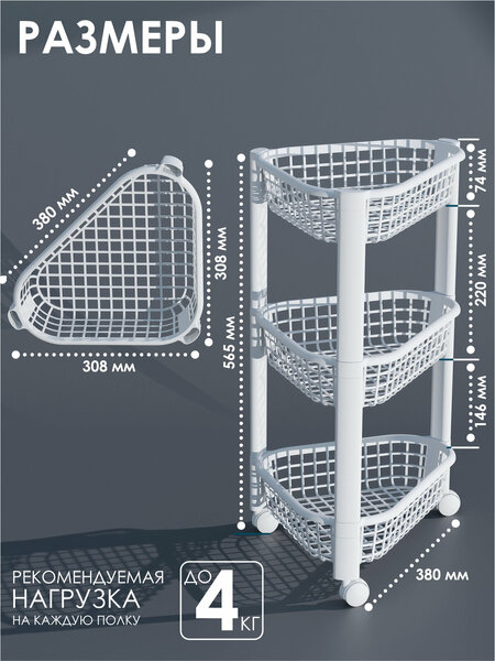 Ищете удобное и стильное решение для хранения? Представляем вам угловую этажерку на колесиках размером 31х31х57 см — идеальный помощник для вашего дома! Ключевые особенности: • Угловой дизайн: эффективно использует углы вашего пространства, позволяя сэкономить место и организовать хранение. • Три секции: достаточно места для хранения овощей, фруктов, кухонных принадлежностей и других предметов. • Мобильность: благодаря колесикам этажерку легко перемещать по кухне или другим помещениям, что делает её универсальным решением. • Стильный белый цвет: элегантный и современный дизайн идеально вписывается в любой интерьер, добавляя легкость и свежесть. Эта угловая этажерка станет отличным дополнением к вашей кухне или ванной, обеспечивая порядок и доступность всех необходимых вещей. Не упустите возможность сделать ваш дом более функциональным и стильным! Закажите сейчас на Яндекс Маркете и наслаждайтесь удобством в вашем пространстве! Отличный подарок на праздник, 8 марта маме, любимой, жене, дорогой, сестре, дочери, подруге, бабушке, на день учителя.