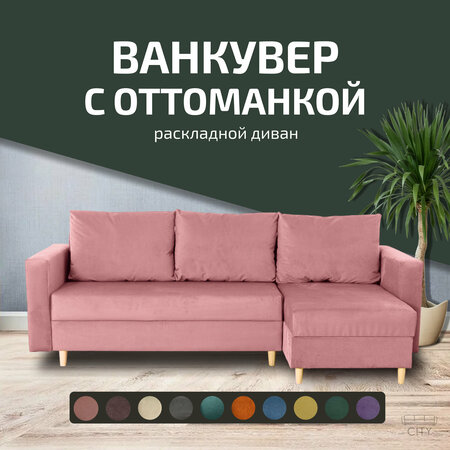 Угловой диван-кровать Ванкувер с оттоманкой - это современное и функциональное решение для вашего дома. Раскладной диван-кровать оснащен механизмом еврокнижка, который обеспечивает быстрое и удобное превращение дивана в просторное спальное место. Это позволяет вам с легкостью организовать дополнительное спальное место для гостей или использовать его в качестве основного места для отдыха. Благодаря возможности устанавливать приставную софу с любой стороны, вы создаете уютное пространство в нужном углу своего дома. Диван оборудован мягкими подлокотниками, которые обеспечивают дополнительный комфорт при использовании. Вместительный ящик, в котором легко помещаются постельное белье, подушки от дивана и другие вещи. Каркас дивана изготовлен из массива дерева, фанеры и ДСП, что гарантирует его прочность и долговечность. Практичная велюровая обивка неприхотлива в уходе, прочна и устойчива к зацепам, а наполнитель обеспечивает мягкость и комфорт при использовании. Диван имеет размеры 240х145х75 см и предназначен для трех человек. Размер спального места: 145 х 210 см. У нас вы можете приобрести дополнительно комплект из двух подушек (36х36 см) под цвет дивана (или любой другой цвет на ваш вкус): бежевый цвет - артикул 4136448466, голубой (бирюзовый) - артикул 4136494415, зеленый - артикул 4136480117, горчичный - артикул 4136522262, коричневый - артикул 573189477, оранжевый - артикул 573194815, розовый - артикул 573182629, серый - артикул 4136450902, синий - артикул 4136471344, фиолетовый - артикул 573180352. Угловой диван-кровать Ванкувер с оттоманкой - это стильное и функциональное решение для вашего дома, которое сочетает в себе комфорт, практичность и современный дизайн.