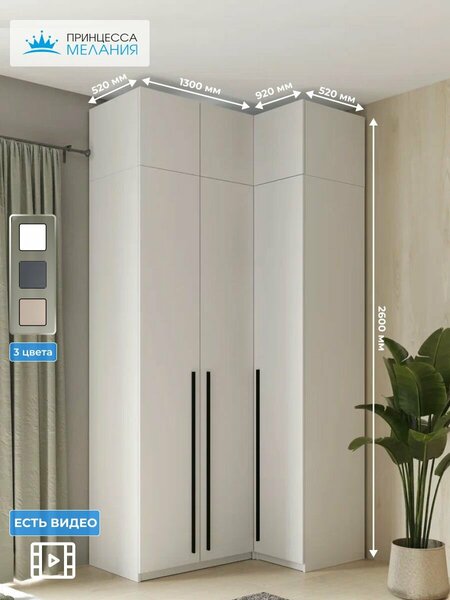Представляем вашему вниманию угловой шкаф для одежды с ящиками и антресолью, который идеально впишется в любую обстановку. Этот белый распашной шкаф, размером 2600 на 1300 на 900 мм, станет великолепным дополнением вашей спальни, детской или прихожей. Он обладает стильным дизайном и высоко функциональным исполнением, что делает его незаменимым элементом мебели в любом доме.