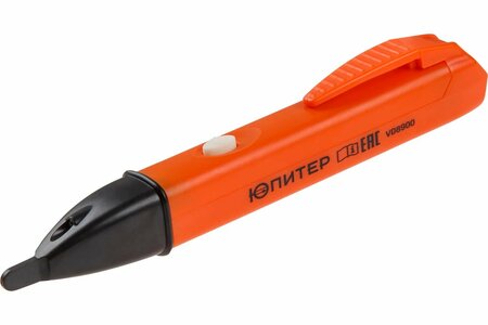 Указатель напряжения юпитер VD8900 (JP9140) позволяет определить наличие переменного напряжения 45 - 1000В через изоляцию, может помочь найти обрыв в проводе. Применение 1. Включить тестер. путем нажатия кнопки на корпусе. 2. Проверить тестер на проводе, заведомо находящимся под напряжением. При обнаружении напряжения загорается индикатор и издается звуковой сигнал. 3. Подносить к проводам, на которых нужно проверить наличие или отсутствие напряжения, на расстояние 1-2см, в случае обнаружения напряжения загорится индикатор и издается звуковой сигнал. Время работы: 6 часов. Категория перенапряжения по ГОСТ IEC 61010-1: CAT II