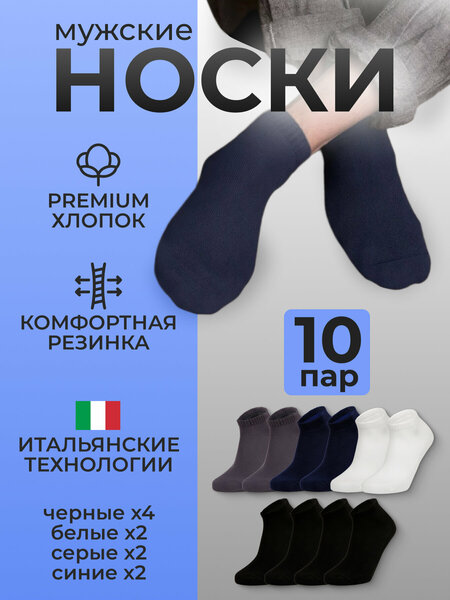 Укороченные мужские однотонные носки - набор из 10 пар разного цвета. Выполнены из высококачественного длинноволокнистого хлопка с добавлением полиамида для прочности и эластана для лучшего облегания и сохранения формы изделия. Они мягкие и комфортные, имеют плоский кеттельный шов, а усиленные мысок и пятка повышают их износостойкость. Мягкие, удобные носки из хлопка не только защищают кожу ног от трения, но и прекрасно справляются с впитыванием и испарением влаги, так что отлично подойдут не только для повседневной носки, но и для спорта. Мужские носки Teatro "Basso" - это лучший выбор для тех, кто ценит высокое качество по доступной цене!