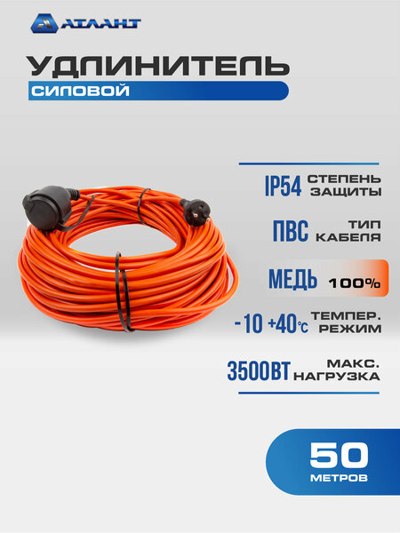 Силовой удлинитель “Атлант” станет верным помощником как садоводам для работы на даче, так и рабочим для строительных работ, обеспечивая стабильное электропитание и удобство в работе. С его помощью Вы сможете расширить доступ к электропитанию и создать рабочую зону где угодно, попутно увеличивая и радиус действия электрооборудования. Особое внимание нужно обратить на наш специально разработанный ПВС-кабель, имеющий ряд преимуществ: Медные токопроводящие жилы. Медь имеет высокую электропроводность, что позволяет ей эффективно и стабильно передавать электроэнергию; 2 медные жилы в кабеле. Дают дополнительную надежность использования уличного удлинителя, а также более стабильную передачу 16 амперного электрического тока и уменьшение вероятности перегрева кабеля; Высокая гибкость. Способен выдерживать множество изгибов без повреждений, а также позволяет укладывать кабель в труднодоступных местах; Устойчив к воздействию окружающей среды. Оболочка и изоляция из ПВХ-пластика делают его более стойким к влаге, некоторым агрессивным химическим веществам и механическим повреждениям; Яркий оранжевый цвет. Обеспечивает высокую видимость на любой поверхности, делая его легко заметным даже в условиях низкой освещенности, на загруженных стройплощадках или в траве. Какие преимущества выделяют наш сетевой удлинитель среди других: 1 евро розетка, подходит для питания мощных строительных инструментов, газонокосилок, электроопилы, триммеров и любых других устройств; Максимальная нагрузка 3500 Вт. Даёт возможность подключить электроинструменты, обеспечивая безопасное и надежное электропитание; Степень защиты IP54. Удлинитель в бухте имеет защиту от пыли и влаги, предотвращающая попадание крупных объектов, розетка предназначена для работы во влажных условиях; 50 метров. Такой запас длины кабеля позволяет подключать электроприбор на больших расстояниях от подключения в розетку без необходимости использования дополнительных сетевых удлинителей; Литая вилка. Обеспечивает прочное и надежное соединение с источником электропитания, исключая риск разъединения, повреждения контактов, перегрева или короткого замыкания; ! Внимание! Перед использованием размотайте кабель до конца! Размотанный кабель обеспечит равномерное распределение нагревания, исключая перегрев и замыкание. Мы гордимся тем, что каждый удлинитель в бухте производится нами с нуля, начиная от первоначальной разработки до конечного изготовления. Это позволяет нам обеспечивать строгий контроль качества на всех этапах производства, чтобы убедиться, что каждая деталь соответствует нашим высоким стандартам.
