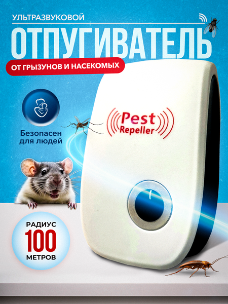 Отпугиватель грызунов и насекомых ультразвуковой используется как средство для избавления от мышей, крыс, тараканов, комаров, пауков, моли, мошек. Прибор может использоваться в складах, ресторанах, отелях, квартирах, подвалах, гаражах, а так же для дома и дачи или в тех местах, где недопустимо использование ядовитых веществ. Отпугиватель мышей рассчитан на площадь до 70 кв. м. Возможна установка нескольких отпугивателей, если площадь больше или разделена перегородками. Ультразвуковой отпугиватель насекомых и грызунов абсолютно безопасен для человека, собак, кошек и других домашних животных. Мышеловка PEST надежная защита от грызунов и насекомых. Работа основана на рассеянном ультразвуковом излучении. Ультразвук воздействует на психику крыс, мышей и насекомых, вызывая у них чувство тревоги, и вынуждает их покидать территорию постоянного обитания. Отпугиватель мышей включают в розетку на высоте 30-100 см от пола и в радиусе двух метров убирают все, что поглощает ультразвук. Электрокот. Отпугиватель мышей. Отпугиватель ультразвуковой грызунов и насекомых Ultrasonic pest repellent модель ZY-666