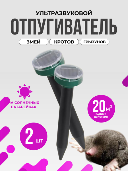 Представляем вам ультразвуковой отпугиватель для защиты вашего участка от нежелательных гостей — кротов, мышей, змей, крыс и других вредителей. Это эффективное средство против грызунов, полевки и медведок, которые могут нанести вред вашему урожаю или портить дачные постройки. Он создает неприятный ультразвук, который не наносит вреда животным и человеку, но заставляет их избегать области, где он установлен. Прибор создает периодические колебания почвы и звуковой сигнал, что воспринимается вредителями, как сигнал опасности и отпугивает их. Товар идеально подходит для использования на даче или в доме, или саду. Для более эффективного использования мы рекомендуем Вам устанавливать прибор через каждые 30м. Благодаря солнечной батарее, которая заряжается днем, устройство работает круглосуточно, даже когда нет электричества. Прибор должен получать солнечную энергию около 8 часов, тогда он будет работать круглосуточно. Забудьте о неэффективных ловушках и ядовитых препаратах! Полезный зоотовар. Этот ультразвуковой отпугиватель обеспечит защиту вашего дома и участка от нежелательных гостей без вреда для здоровья вас и ваших домашних питомцев.
