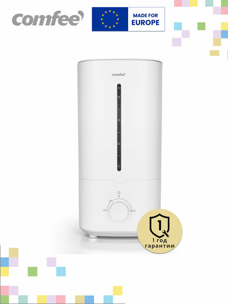 Ультразвуковой увлажнитель воздуха Comfee CH42WM - это современное и эффективное устройство для поддержания оптимального уровня влажности в вашем доме. большой резервуар для воды Увлажнитель оснащен резервуаром для воды объемом 4,5 литра, что обеспечивает непрерывную работу на протяжении 10 часов. удобство И простота использования Устройство оснащено механическим управлением и индикацией включения, что делает его простым и удобным в использовании. Регулировка скорости вентилятора/интенсивности испарения позволяет настроить уровень влажности в соответствии с вашими предпочтениями. Верхний залив воды позволяет легко и быстро пополнять резервуар, не требуя при этом отключения устройства. бесшумная работа Ультразвуковой увлажнитель работает от сети и имеет низкий уровень шума всего 35 дБ, что делает его практически бесшумным. легкий И компактный Компактный размер увлажнителя и его вес в 1,18 кг позволяют легко перемещать устройство по дому. Comfee CH42WM - увлажнитель, который создаст оптимальный микроклимат в вашем доме.