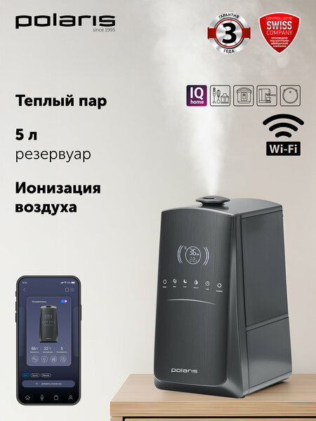 Ультразвуковой увлажнитель воздуха Polaris PUH 9105 Wi-Fi IQ Home, тёмно-серый