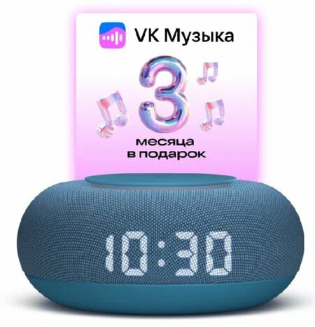 Умная колонка VK Капсула мини (с часами) + в подарок 3 месяца подписки VK, морской синий