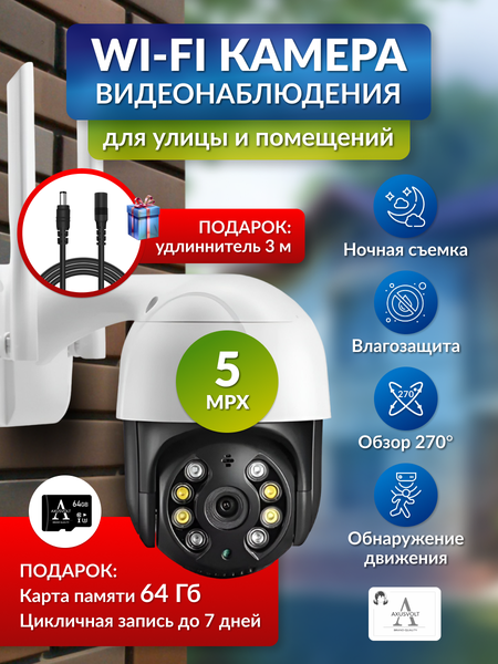Беспроводная уличная поворотная 5Мп Wi-Fi IP камера видеонаблюдения уменьшенного типа.