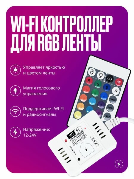 Умный контроллер для светодиодных лент с поддержкой Алисы и пультом ДУ. Превратите обычную светодиодную ленту в интеллектуальную RGB-подсветку с расширенными возможностями! Этот контроллер позволяет гибко управлять освещением через Wi-Fi или с помощью компактного RF-пульта, открывая простор для творчества. Настраивайте оттенки, регулируйте яркость и выбирайте динамические световые эффекты, создавая идеальную атмосферу для любого момента. Ключевые преимущества: - Голосовое управление через Алису – меняйте цвет, включайте и выключайте свет, не отвлекаясь от дел. - Мощность 144 Вт – стабильная работа даже с длинными лентами без потери качества свечения. - Двойное управление – через RF-пульт (в комплекте) или смартфон (Wi-Fi). - Запоминание настроек – устройство сохраняет последние параметры освещения после отключения питания. - Музыкальный режим – свет пульсирует в ритме звука, превращая комнату в импровизированную дискотеку. - Умные сценарии – автоматическое включение по расписанию и удалённое управление из любой точки мира. Как подключить и настроить: 1. Подсоедините контроллер к LED-ленте через 4 контакта (питание + каналы R, G, B). 2. Используйте блок питания 12В или 24В (важно выбрать ленту с тем же напряжением). 3. Настройте Wi-Fi (2.4 ГГц) в приложении Magic Home и синхронизируйте с Яндекс Алисой. Где пригодится: - Дом – светодиодная подсветка телевизора, кухонного фартука, спальни или гардеробной. - Офис – зонирование пространства и создание комфортной рабочей обстановки. - Вечеринки – живая RGB-подсветка, реагирующая на музыку. Соберите умную систему освещения без сложного монтажа – легко, стильно, современно!