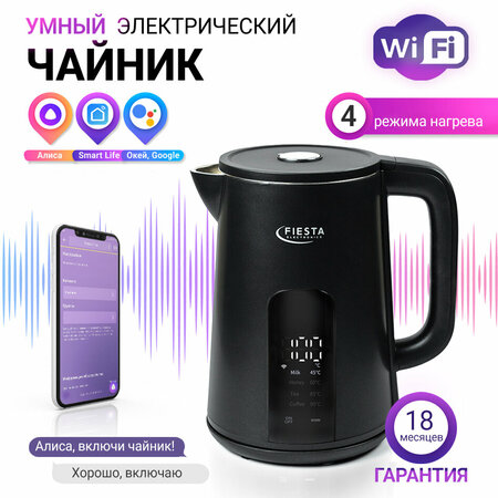 Откройте для себя новый уровень удобства и эффективности с умным электрическим чайником от Fiestaelectronics, оснащенным Wi-Fi и интеграцией с голосовым ассистентом Алисой. Это больше, чем просто чайник – это настоящий помощник для вашего умного дома. С помощью TUYA SmartLife вы можете управлять чайником дистанционно через ваш смартфон, задавать температуру и режимы нагрева, а также создавать умные сценарии, которые адаптируются под ваш образ жизни. Пять режимов нагрева от 40°C до 100°C позволяют легко приготовить разнообразные напитки: от детских смесей до глинтвейна, а встроенные функции поддержания тепла и отложенного старта помогут сэкономить ваше время. Подключение по Wi-Fi обеспечивает поддержку команд голосового управления как от Алисы, так и от Google Ассистента, делая использование устройства предельно простым и удобным. Этот умный чайник гармонично впишется в любую кухню, став не только функциональным прибором, но и стильным элементом интерьера. Идеальный выбор для тех, кто ценит комфорт, современность и новые технологии. Благодаря интуитивно понятному приложению вы всегда будете в курсе текущего состояния устройства и сможете задать любые параметры работы буквально в два клика. Подарите себе и своей семье максимальное удобство с умным электрическим чайником от Fiestaelectronics – вашим новым незаменимым помощником на кухне.