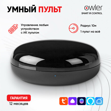 Умный ИК-пульт Owler Smart IR Control – современное решение для управления бытовой техникой и устройствами умного дома. Благодаря мобильному приложению Tuya Smart, вы сможете организовать охрану, управление и мониторинг любого объекта вашей недвижимости. Особенности пульта ДУ Owler Smart IR Control: - Тип пульта: умный - Передача сигнала: Wi-Fi и ИК - Настройка пульта ДУ: мобильное приложение - Питание: разъем micro USB (5 В) С помощью Owler Smart IR Control вы сможете управлять бытовой техникой, системами безопасности и другими устройствами умного дома. Комплектация: пульт управления, голосовое управление. Тип соединения устройств: беспроводное. Протокол связи Умного дома: Wi-Fi. Работает в системе Умный дом: Да. Настройка пульта ДУ: мобильное приложение. Питание: разъем micro USB (5 В). Опции и комплект: голосовое управление.