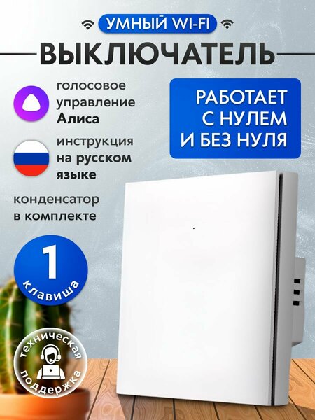 Достоинства:пока только цена Недостатки:инструкции на русском нет от слова совсем. не работает с гугл ассистентом и амазон алекса, в связи с санкциями. с Алисой удалось подружить, но управление голосом только через приложение, либо нужен купить хаб от яндекса, т. к. без него не подключить выключатель к вай фай и не будет работать голосовое управление выключателя. Комментарий:установлю его на днях, пока про качество сказать нечего. все пришло целым. как подключать его - понятно