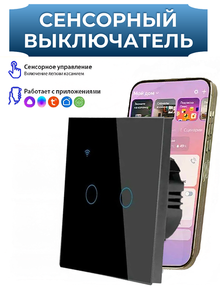 Умный сенсорный Wi-Fi выключатель позволяет управлять световыми приборами с помощью мобильного приложения или при подключении к Яндекс Алисе. Мощность нагрузки - 1000 Вт! • Выключатель можно подключить как "без нуля" с конденсатором ( входит в комплект), так и "с нулём" или через заземление если они есть в подрозетнике • Выключатель прекрасно работает с Яндекс. Алисой через связку Яндекс с любым из приложений Tuya Smart / Digma Smart / Smart Life. Также выключатель оборудован радиомодулем 433 МГц, что позволяет подключить к нему беспроводной повторитель и сделать дома проходные выключатели без проводов под них, что очень удобно! • Свет можно включать нажатием на сенсорную кнопку с подсветкой на передней панели выключателя, либо голосом. Алиса позволяет группировать освещение и управляет каждой группой света отдельно, можно называть их как угодно и добавлять в сценарии. Также можно делать из них переключатели через сценарии в приложении Tuya. • Размер стандартный - 86х86мм, монтируется в обычный круглый подрозетник, глубина посадочного места 25мм, диаметр 50мм, подключение не составляет труда, вместо вашего выключателя (нужно всего 2 провода - фаза от щитка и фаза на светильник, и ноль \ земля если есть) • При варианте подключения без нейтрального провода необходима установка конденсатора на первую группу света. Он идёт в комплекте с выключателем! Комплектация Умный выключатель, конденсатор, болты крепления, коробка